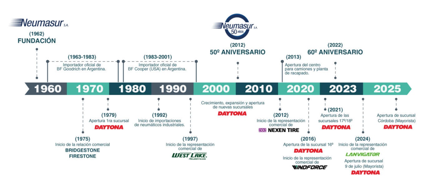 Con más de 50 años de experiencia en la industria de neumáticos, en Neumasur nos enorgullece haber construido una sólida reputación basada en la confianza, la atención de calidad y la agilidad en el servicio. Más que un simple vínculo comercial, somos un socio estratégico para nuestros clientes. Elegir a Neumasur significa contar con un aliado que ha demostrado su compromiso con el crecimiento y la satisfacción de quienes nos eligen.